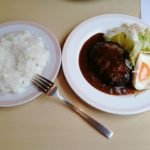 ごはん処しろうずです。今週のメニューは先週に引き続き〜ハンバーグ、チーズがんも、ひじきの煮物、竹輪とキュウリのワサマヨ、ところてんの酢味噌かけ、ご飯、味噌汁、デザート♪